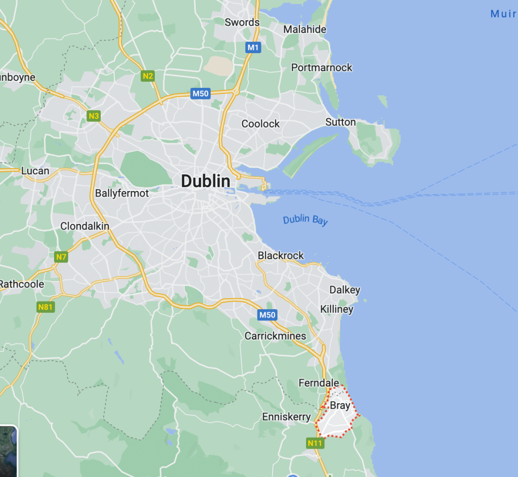 We are staying in the seaside town of Bray. Bray has a beach, boardwalk, aquarium, train station, hikes, and lots of shops, pubs and restaurants!